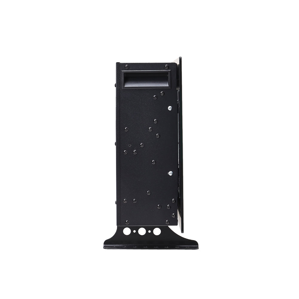 • Strong tempered glass front panel ensures safety