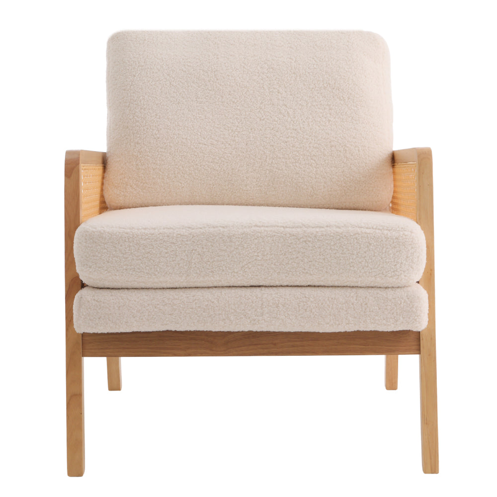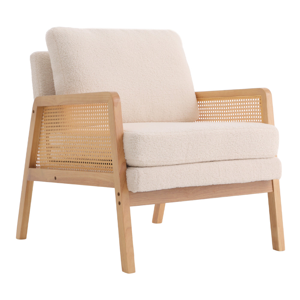 Cushioned Velvet Upholstered Wooden Rattan Armchair