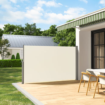 Product Description: Our White Retractable UV Resistant Privacy Side Awning not only provides a cool and shaded patio, but also protects you from prying eyes. With a rust-resistant frame and UV-resistant cover, this awning guarantees a long lifespan and a comfortable afternoon. Easily pull out the awning for uninterrupted relaxation when there is a light breeze or sun shining down. The simple installation process is made even more stable with attached brackets.