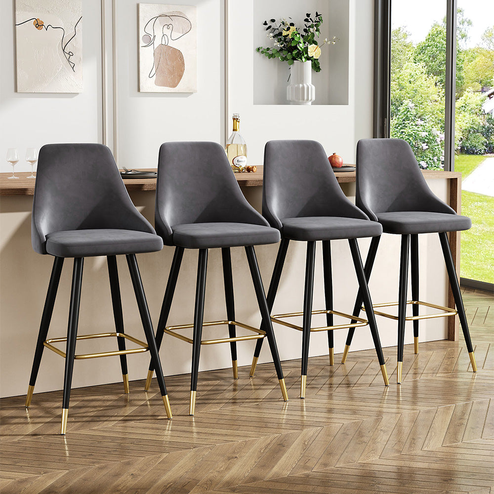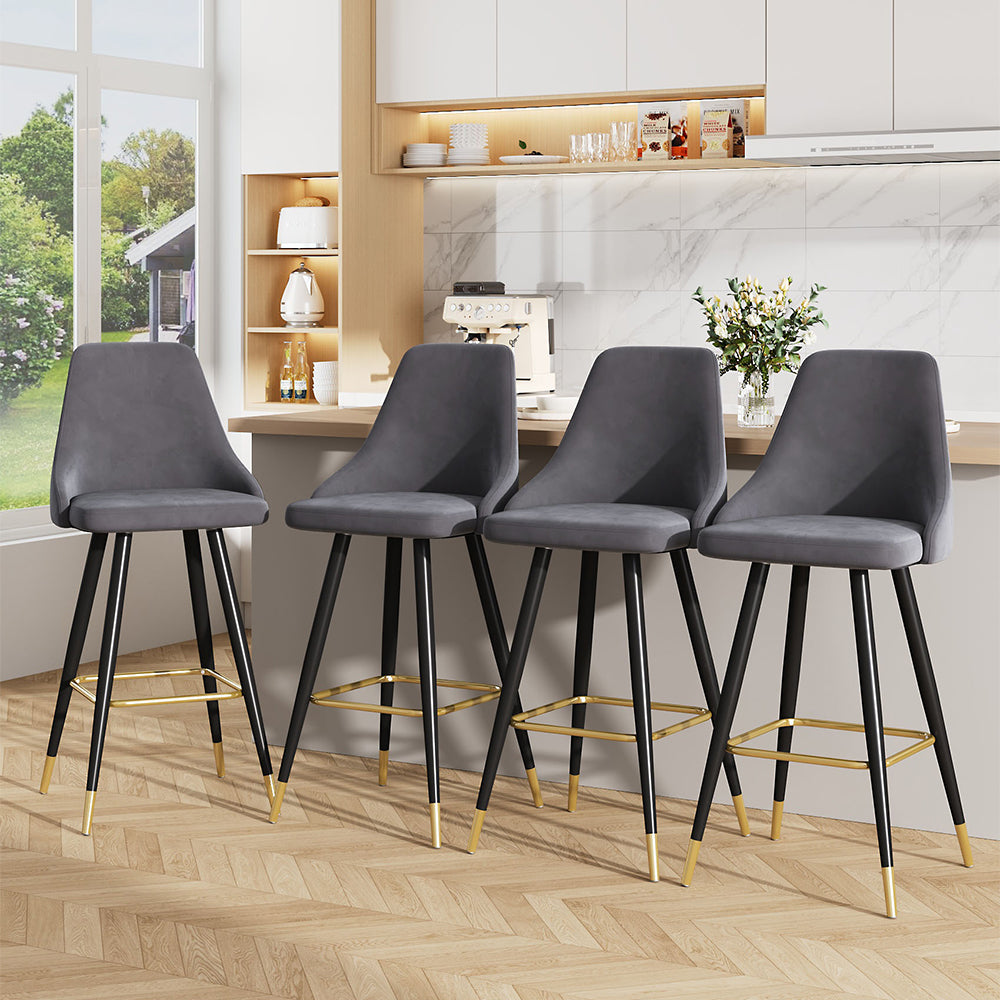 Our Livingandhome modern style stools are designed to blend in with all home interior themes. Featuring a modern and timeless profile, these high chairs not only provide seating comfort but also an exquisite look. Each chair is supported by 4 slick metal legs with chic black and gold finish. Together with the golden footrests, they add an especially high-end touch to the modern bar stool while offering a place to rest your feet.
