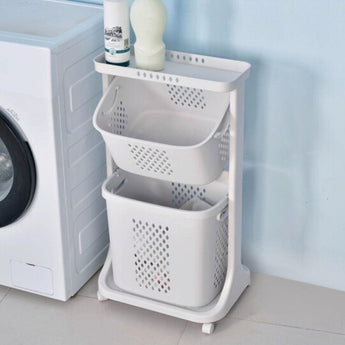 2/3 Tiers Laundry Basket Plastic Storage Trolley