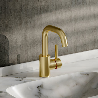 Minimalist Single-Handle Vessel Faucet with Swivel Spout, Gold