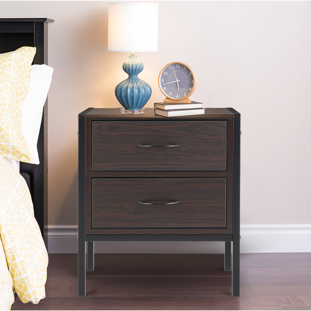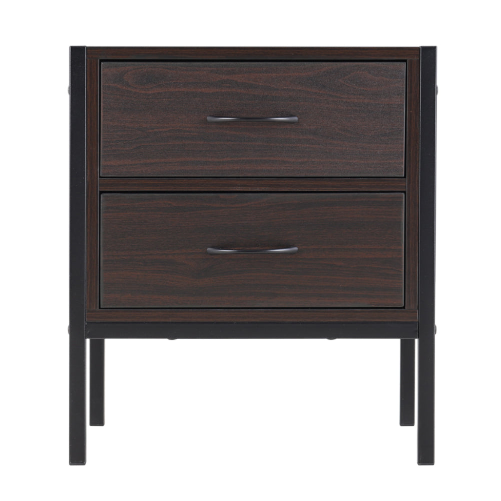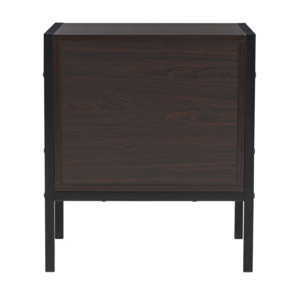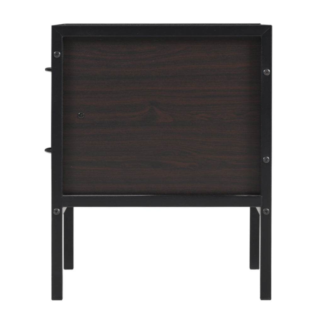Dark Brown Wooden Nightstand with Metal Frame and 2 Drawers