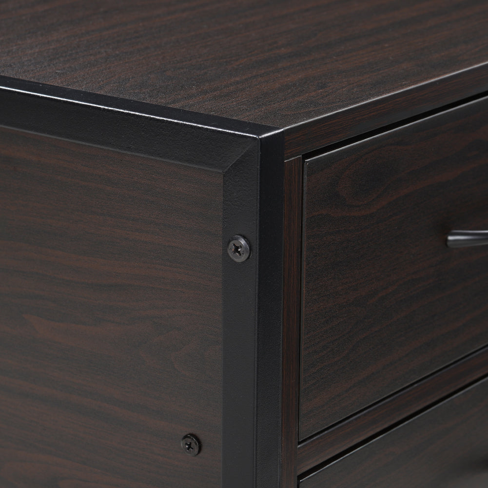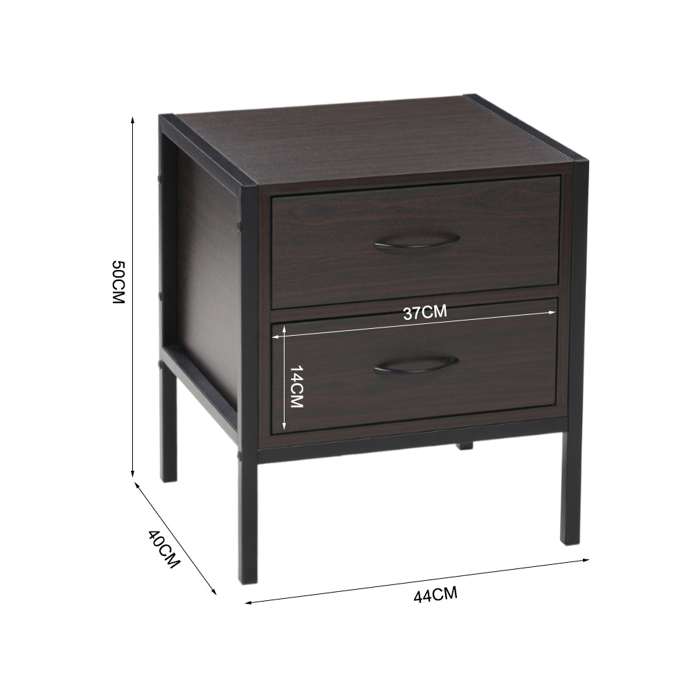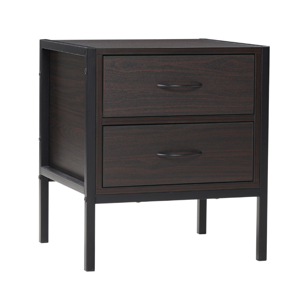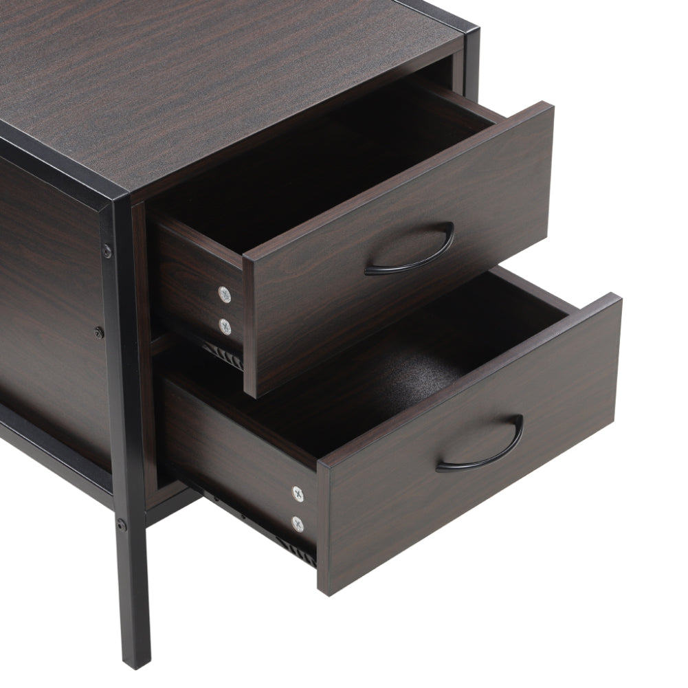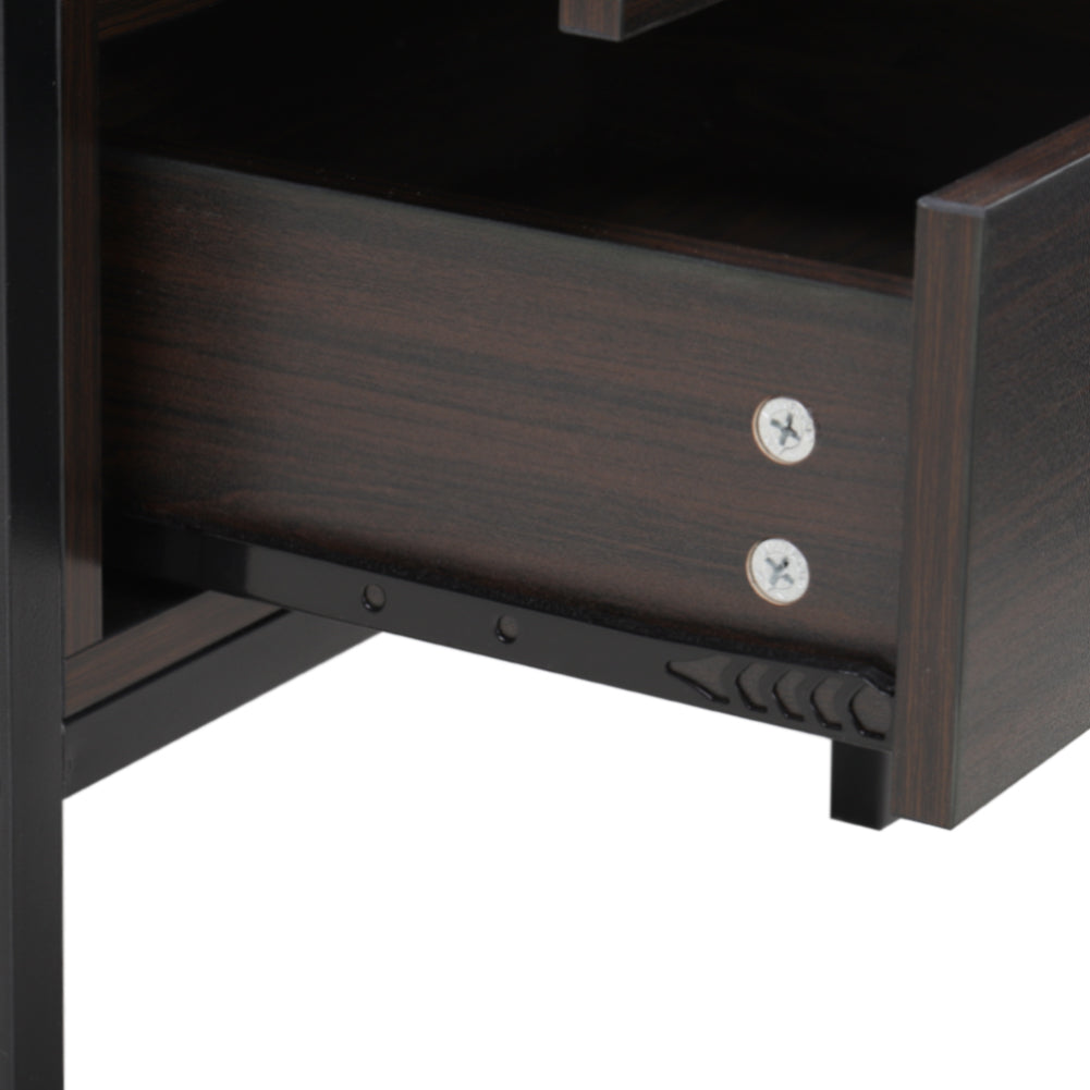 Dark Brown Wooden Nightstand with Metal Frame and 2 Drawers