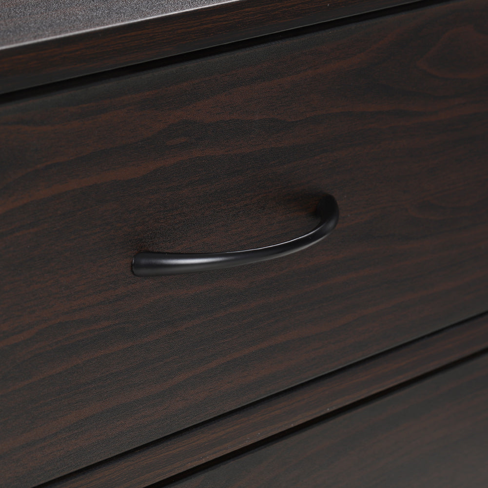 If you are looking for a nightstand with a simple design and abundant storage space, then this Nightstand will do. A retro wooden body with a black metal frame, it blends into rustic, traditional, and industrial styles effortlessly. Without any dramatic design, it just has a wide tabletop and two spacious drawers for your lamp, photo frames, alarm, remotes and books. What's more, there is a metal handle on each drawer for easy grip to slide open and close it.