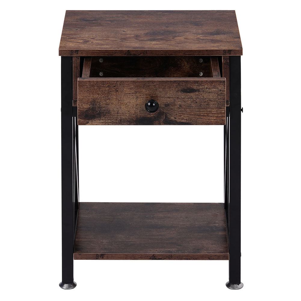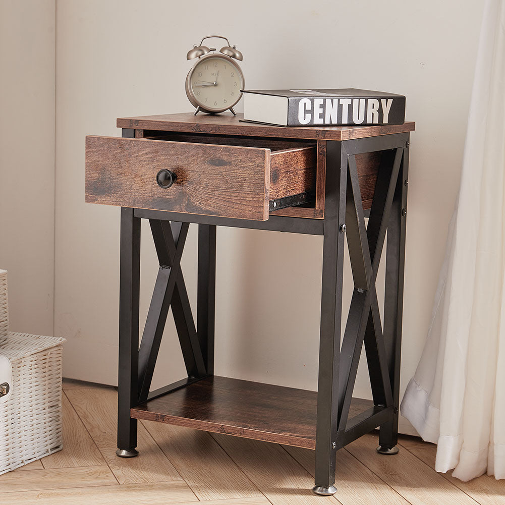Metal-Framed X-Shaped Wooden Nightstand with Drawer