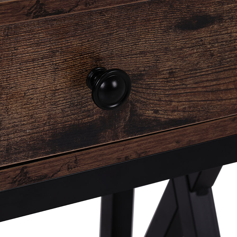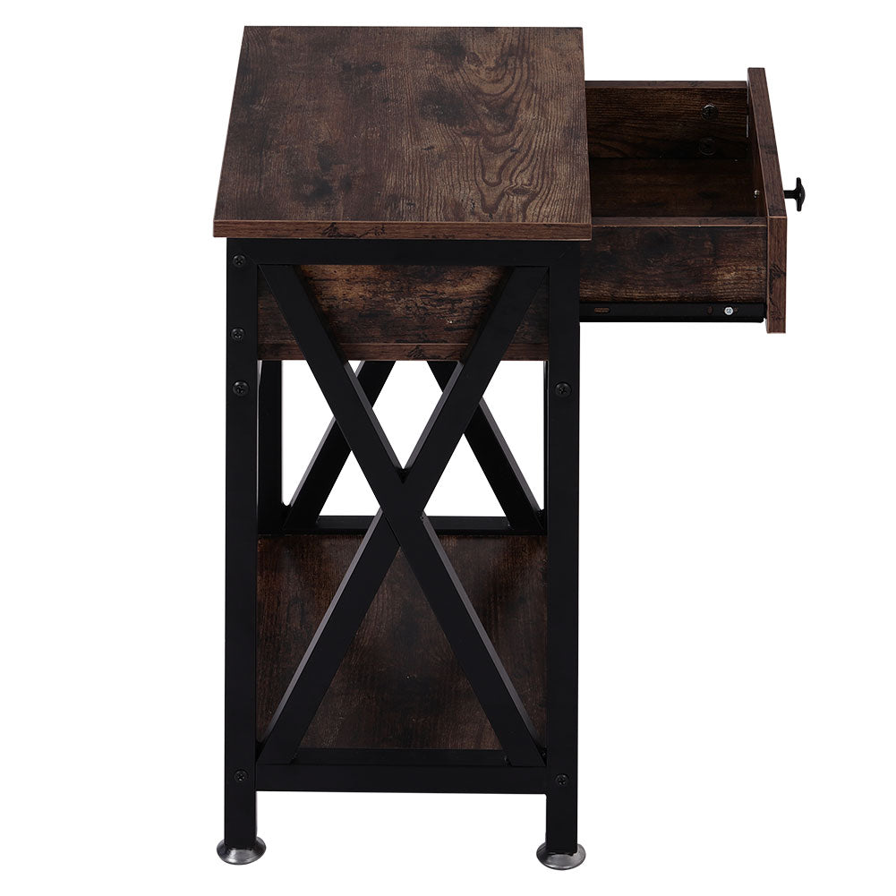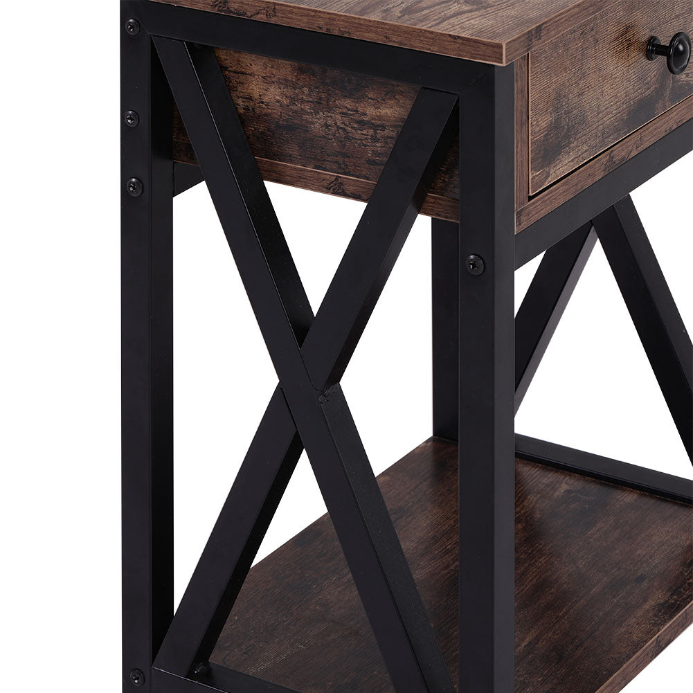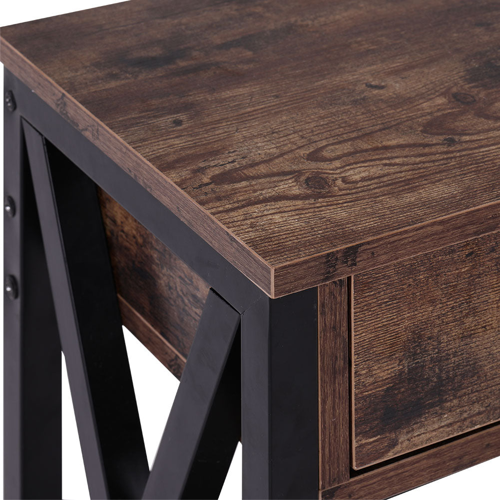 The classy mix and match with black x frame and grained brown surface make this H&O Direct side table a timeless addition to fit in any room. Its clean lines make it look coordinated next to any type of sofa. The best part is that it keeps your cup within hand’s reach. You can show off your photo frame and plants on the top while keeping other small items well organized in the drawer.