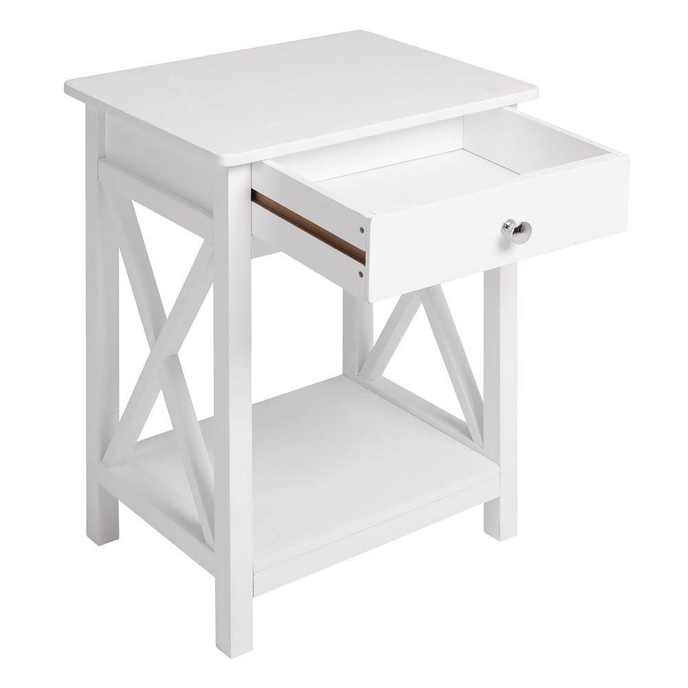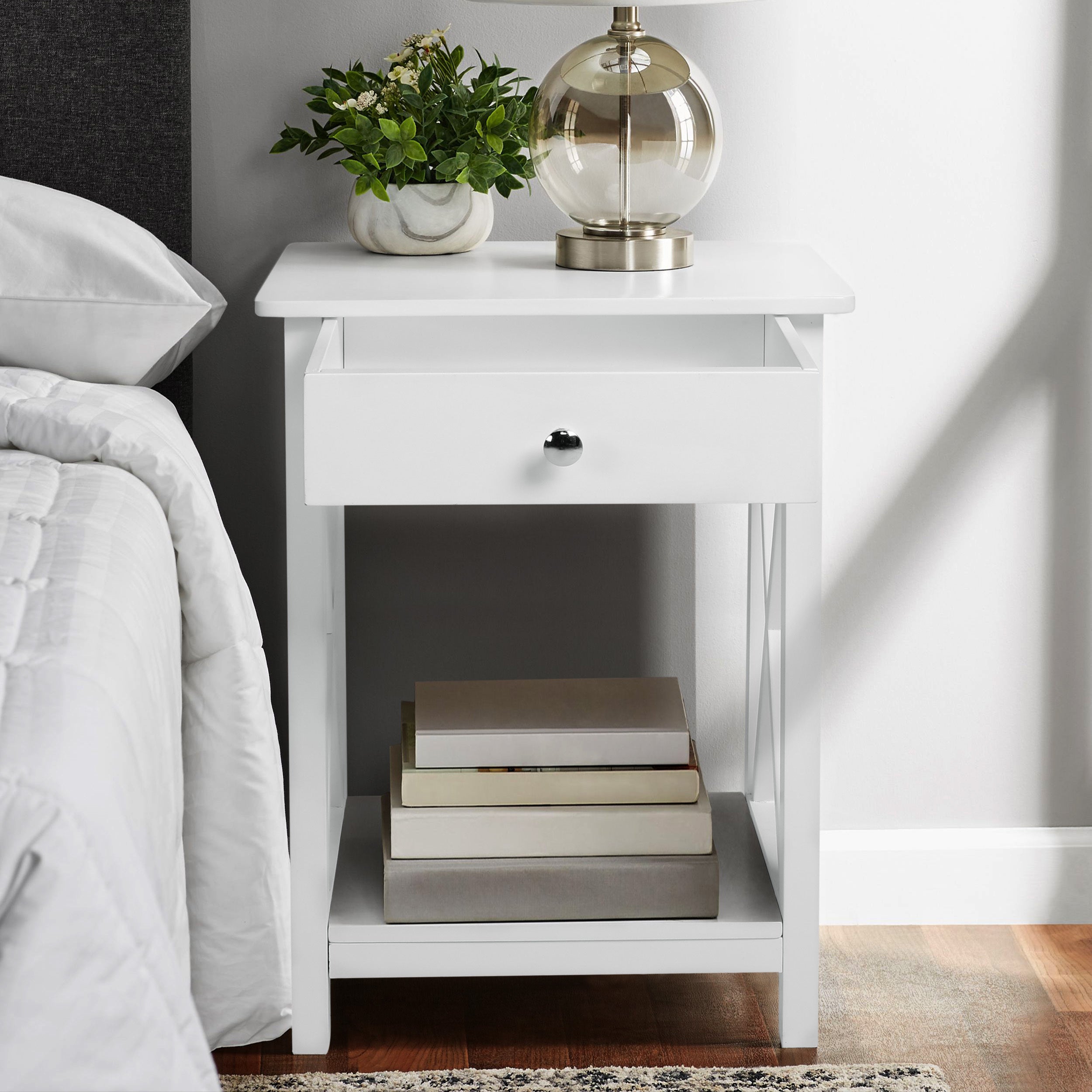 Crafted with x-shaped side frames and a slender drawer featuring a simple round metal handle, our vintage nightstand combines modern elegance with practical storage for all of your bedside essentials.