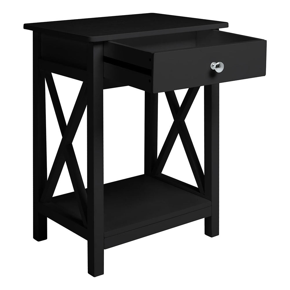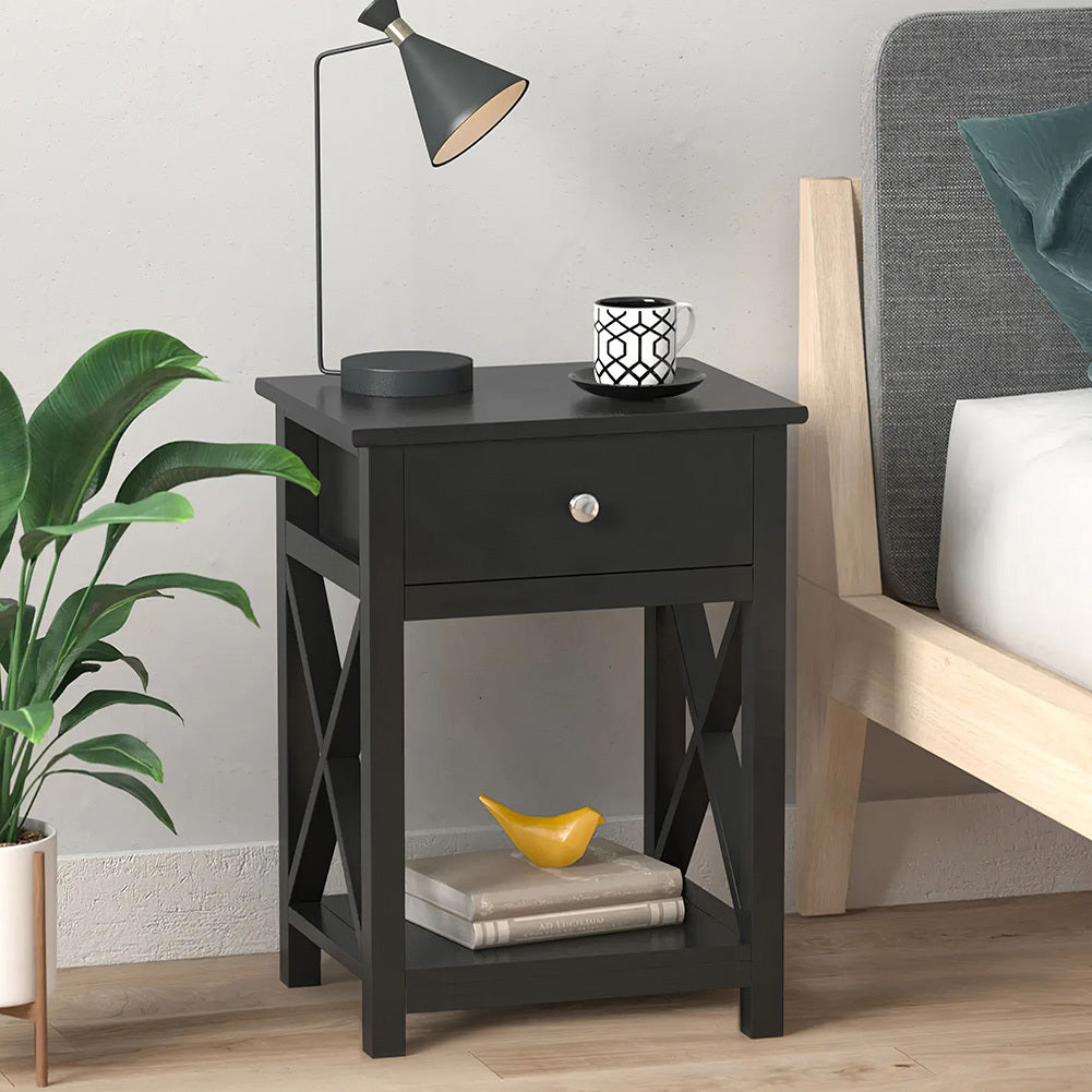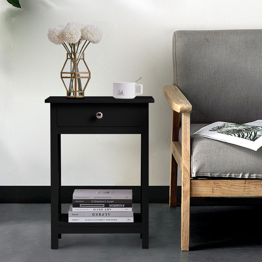 Black Wooden One Drawer Bedside Table Nightstand with Storage Shelf