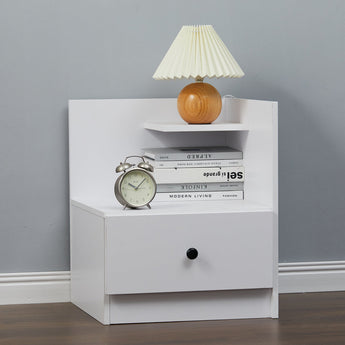 Urban Style Bedside Table with Drawer and Open Shelf Wooden Nightstand