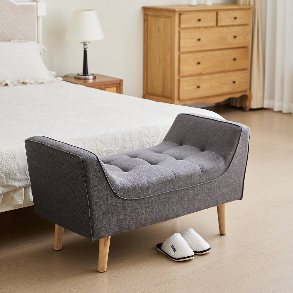 Need a bench that is both functional and visually pleasing? The chenille bench we offer is a top choice that goes above and beyond. It boasts a classic deep-pull button design, with raised ends for a touch of playfulness and charm, adding depth and interest to the bench. Natural wooden legs provide a warm touch and elevate the overall ambiance. Plus, the plush sponge padding ensures maximum comfort, making it a welcoming addition for even short rests.