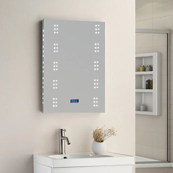 This modern bathroom mirror is an excellent choice for any bathroom. Its streamlined, rectangular shape at 60'' makes it ideal for any size space. With the innovative LED touch feature, shaver socket, and clock, this mirror has everything you need. Plus, its anti fog film guarantees a clear reflection at all times, making it a practical and stylish addition to any bathroom.
