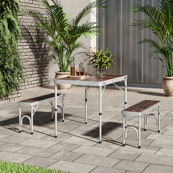 Foldable Outdoor Camping Dining Set of Picnic Table and 2 Benches