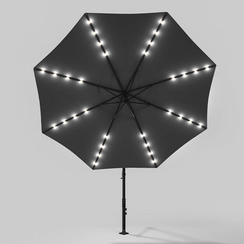 Grey Outdoor Cantilever Parasol Umbrella with LED Lights