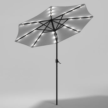 Light Grey Outdoor Crank Lift Parasol Umbrella with LED Lights