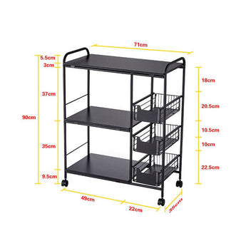 Designed for both functionality and style, this black microwave rack measures 71 * 35 * 90cm and features four spacious tiers. Crafted from durable MDF with a sleek lacquer finish, it complements any kitchen decor while providing ample storage space for your microwave and other kitchen essentials. This microwave rack is perfect for maximizing your kitchen's organization, whether you're a culinary enthusiast or simply seeking a tidy space.