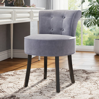 Whether you are getting ready in the morning or unwinding after a long day, this stool provides a comfortable and relaxing experience. Decorated with delicate velvet and paired with black slanted rubberwood feet, it offers a modern, stylish look that complements any space. The chair features a round, thick cushion and a tufted high backrest, ensuring you stay comfortable even during extended periods of use, making it ideal for completing your perfect makeup or simply relaxing.
