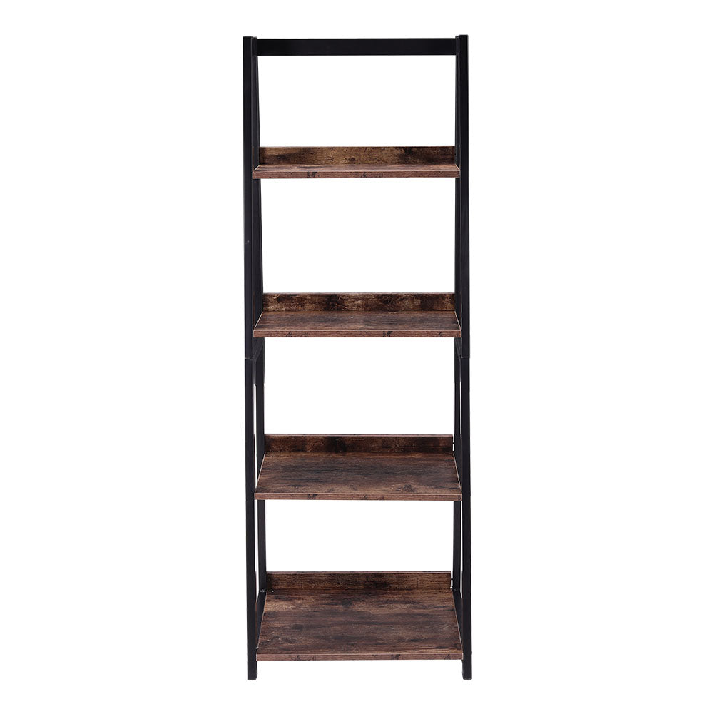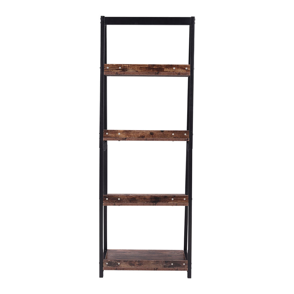 Update the organization in your office or study with this H&O Direct ladder shelf. Crafted from high-quality wood and sturdy metal, this shelf is built to last. It boasts its four-tiered shelves that feature a warm brown finish with a visible wood grain for a vintage farmhouse aesthetic. The shelves get progressively smaller from the bottom up to leave space for items of different sizes and shapes. And the industrial-inspired metal frame offers a streamlined look to your space.