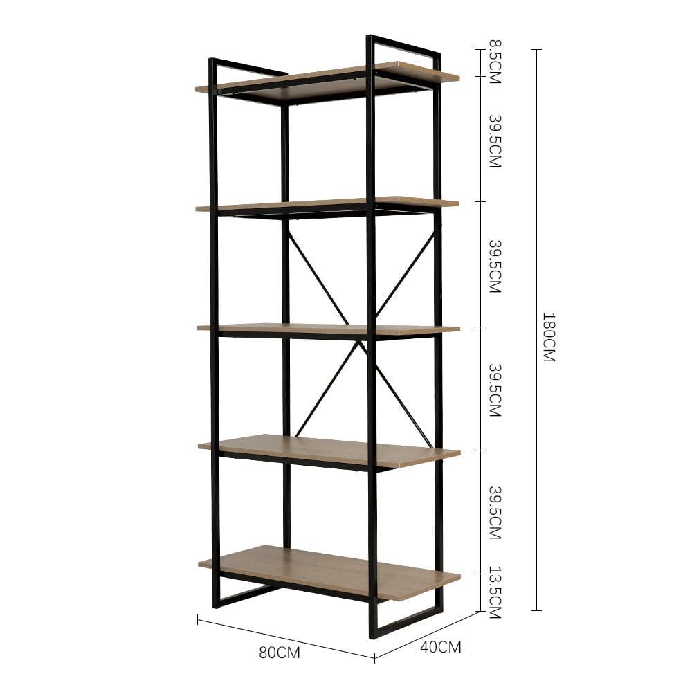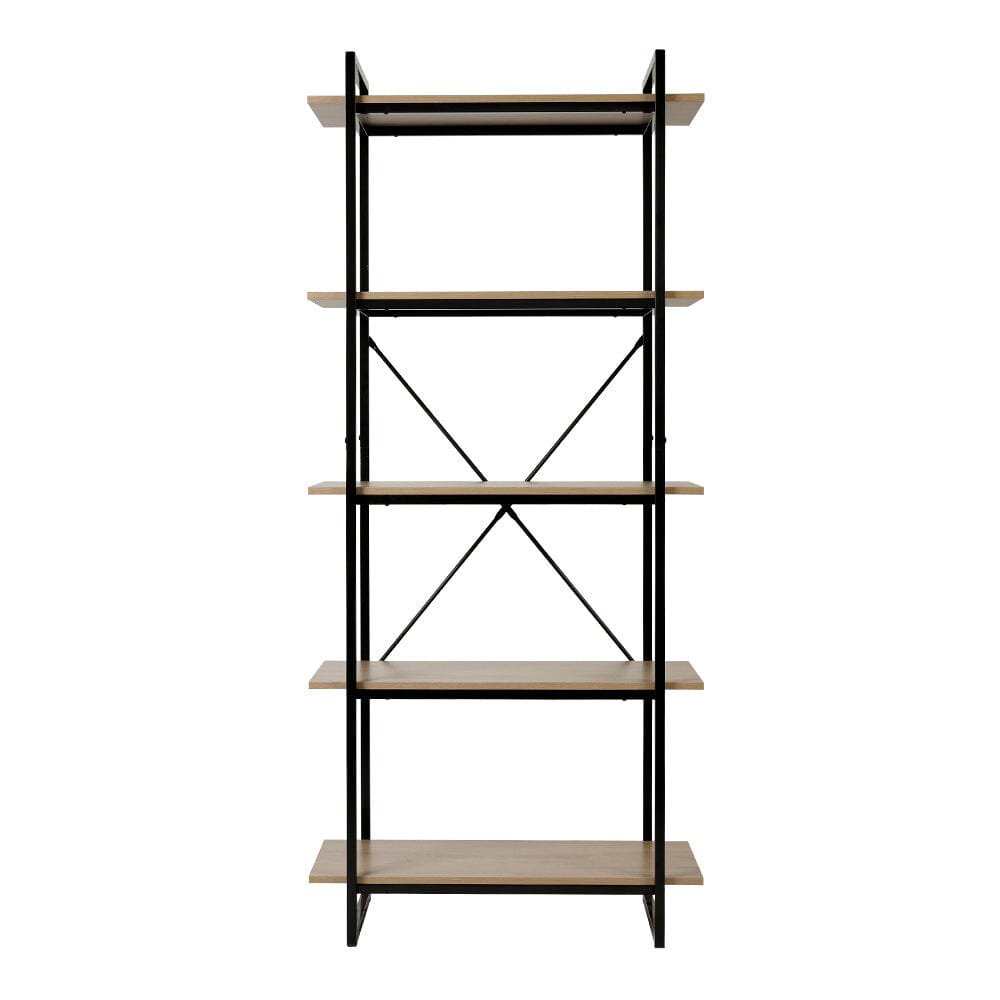 Bring plenty of storage space to your home with this industrial-inspired bookcase. Crafted from durable particleboard and a robust metal frame, it has an open and airy look with five tiers of shelves. Reinforced with cross bars for added strength, it confidently holds your books, magazines and decor. Its minimalist industrial design seamlessly complements any home setting, making it perfect for showcasing your literary collection or adding a chic touch to your living space.