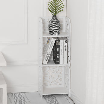 This storage shelf boasts a subtle white finish, elegant design, and intricately carved details. Its compact size is perfect for daily essentials, and the three-tiered shelves allow for easy access. The carved panels highlight small yet expressive elements, adding a refined touch of sophistication to your living space.