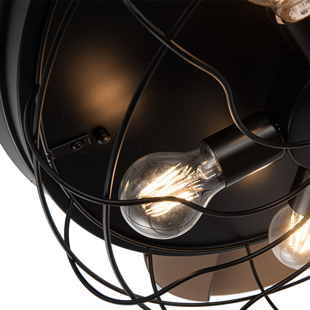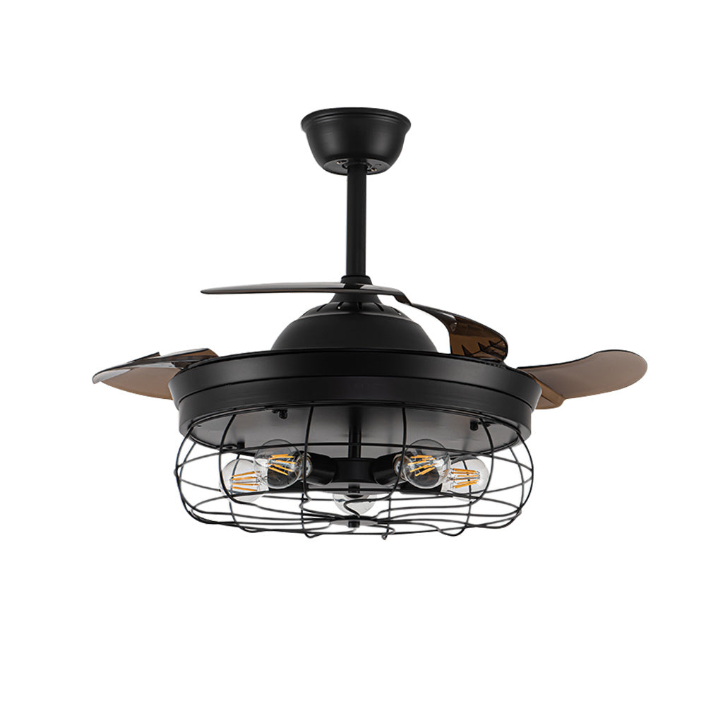 Industrial-Style Round Wire Caged Ceiling Fans Reversible Blades with Lights and Remote