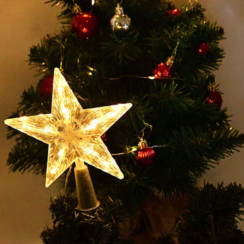 This enchanting star-shaped tree topper is the perfect finishing touch for your Christmas tree, effortlessly creating a warm and festive holiday atmosphere. Designed to fit most standard-sized Christmas trees, it can be easily and securely attached to the treetop, staying firmly in place throughout the season. The built-in LED lights emit a soft and cheerful glow after dark, casting delicate patterns that add a magical charm to your decor. Ideal for both tree topping and general holiday home decoration, it is a must-have piece for spreading festive cheer.