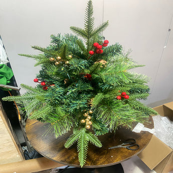 Create an enchanting winter focal point in your garden with this beautifully crafted artificial Christmas tree urn filler! Meticulously designed to mimic natural pine branches, it forms a lush, full silhouette with well-defined layers for an authentic look. Vibrant berry clusters and pine cones are artfully woven throughout the branches, offering cheerful colour contrast and a touch of woodland charm. Combined with the warm glow of string lights, this tree establishes a cosy and magical festive atmosphere in any outdoor setting.
