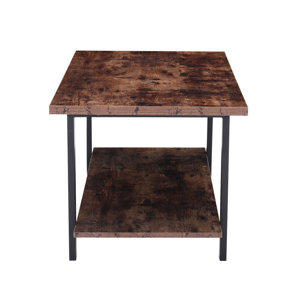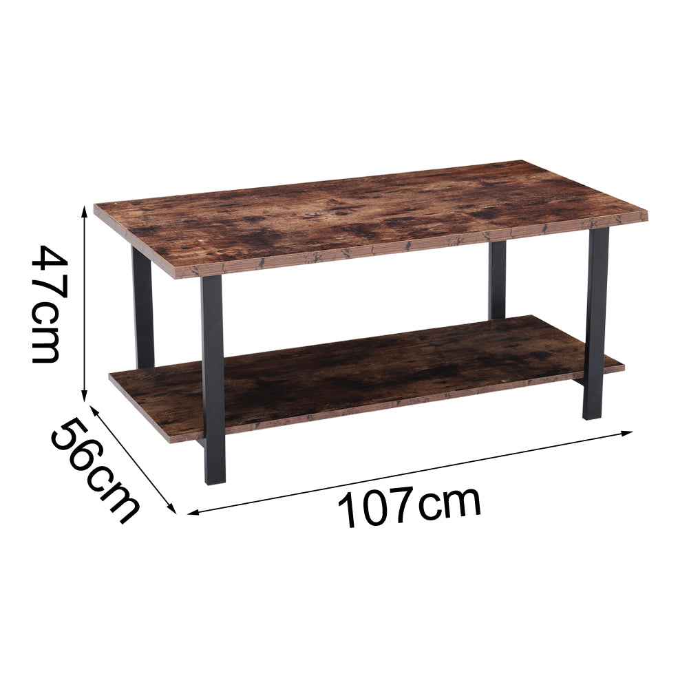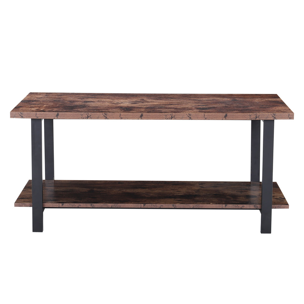 2 Tier Wooden Industrial Style Coffee Table with Storage Shelf