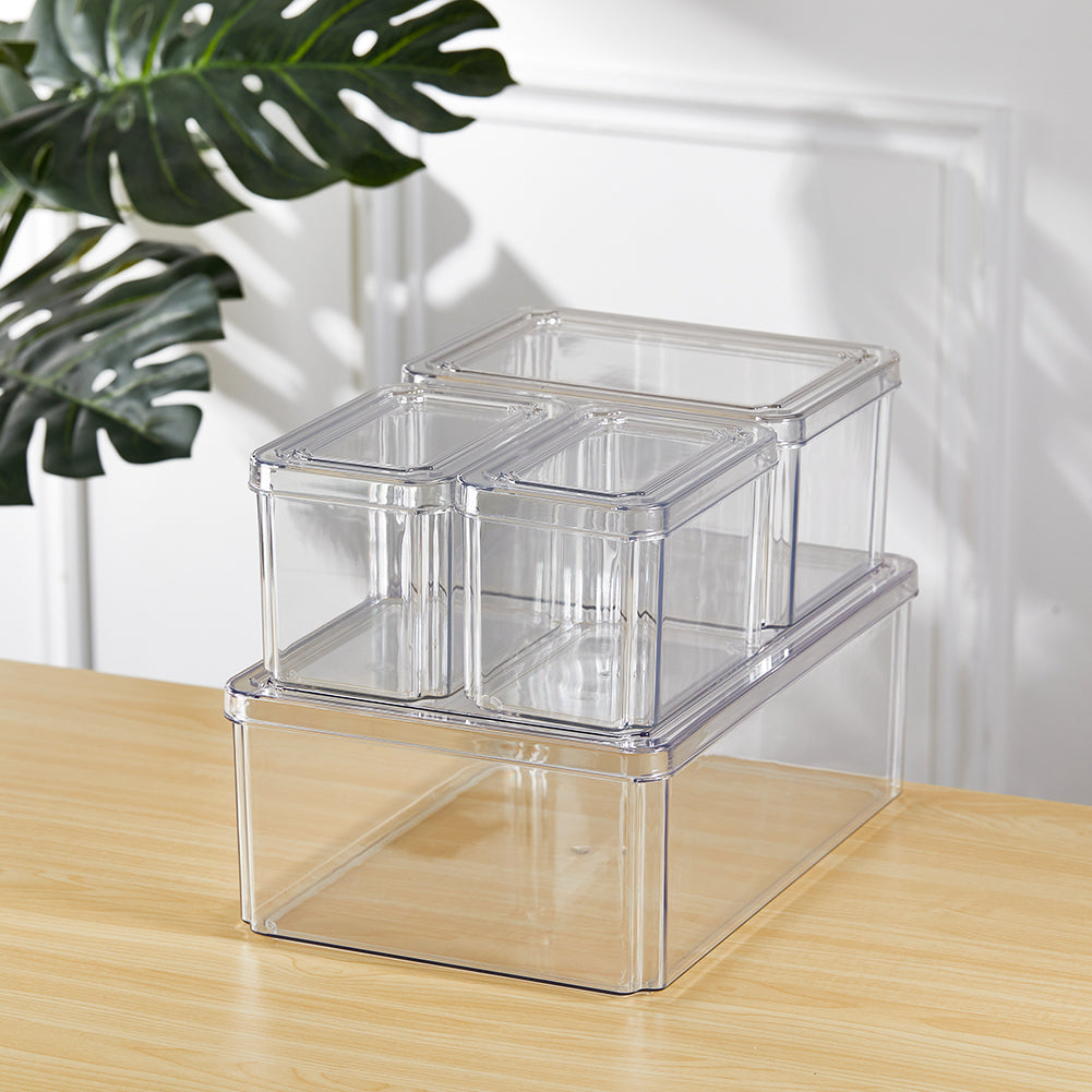 Maximize the use of space in your refrigerator with these refrigerator bins, your ideal solution for organizing your fridge. The set includes 1 large, 1 medium, and 2 small bins, all made of transparent PET material. This transparency allows you to easily see the contents, making it simple to replenish ingredients and discard spoiled items. Each bin comes with a lid for a secure closure, ensuring the freshness of vegetables, fruits, and other produce. These storage bins are easy to clean and reusable, making them an environmentally friendly storage option.