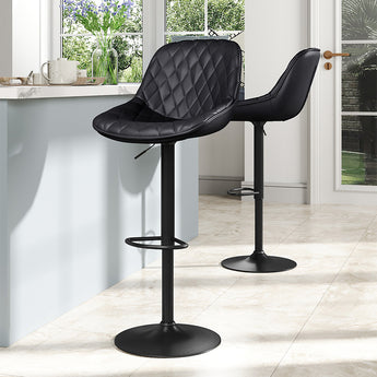 Set of 2 Faux Leather Height Adjustable Bar Stool Black
