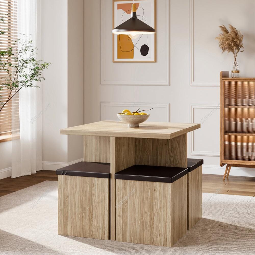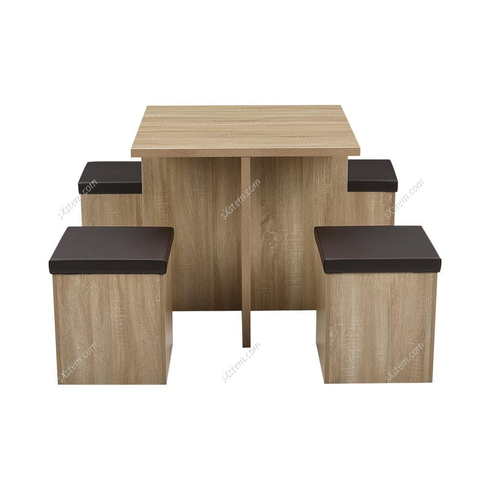Upgrade your space with this versatile Table and Stools Set, perfect for homes with limited space. Accompanied by four stools that double as storage boxes, you can tuck them neatly under the table to maintain a clean and organized look. Crafted from robust manufactured wood material, this furniture set is both stable and durable, requiring minimal maintenance and is easy to clean. Whether it is in the game room, lounge, or a children's play area, this set provides the perfect seating arrangement.