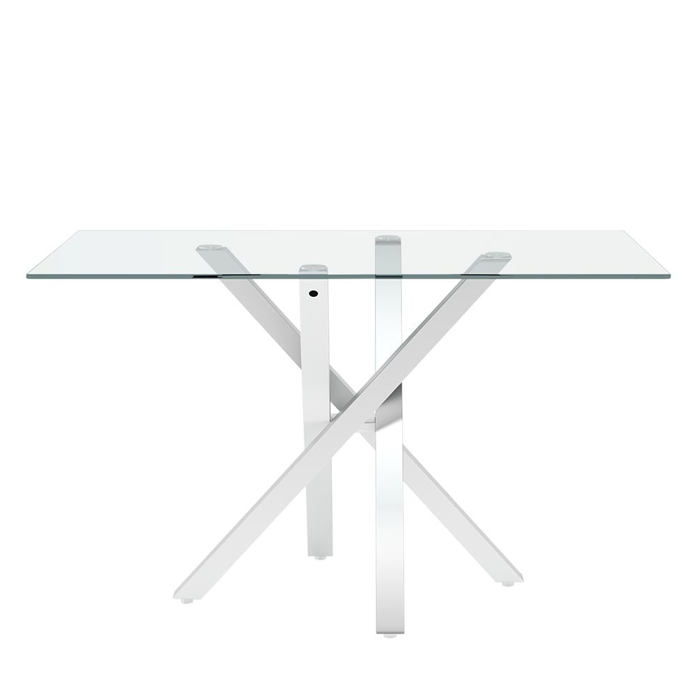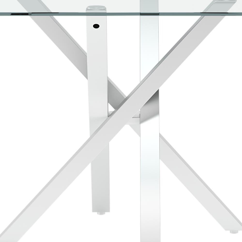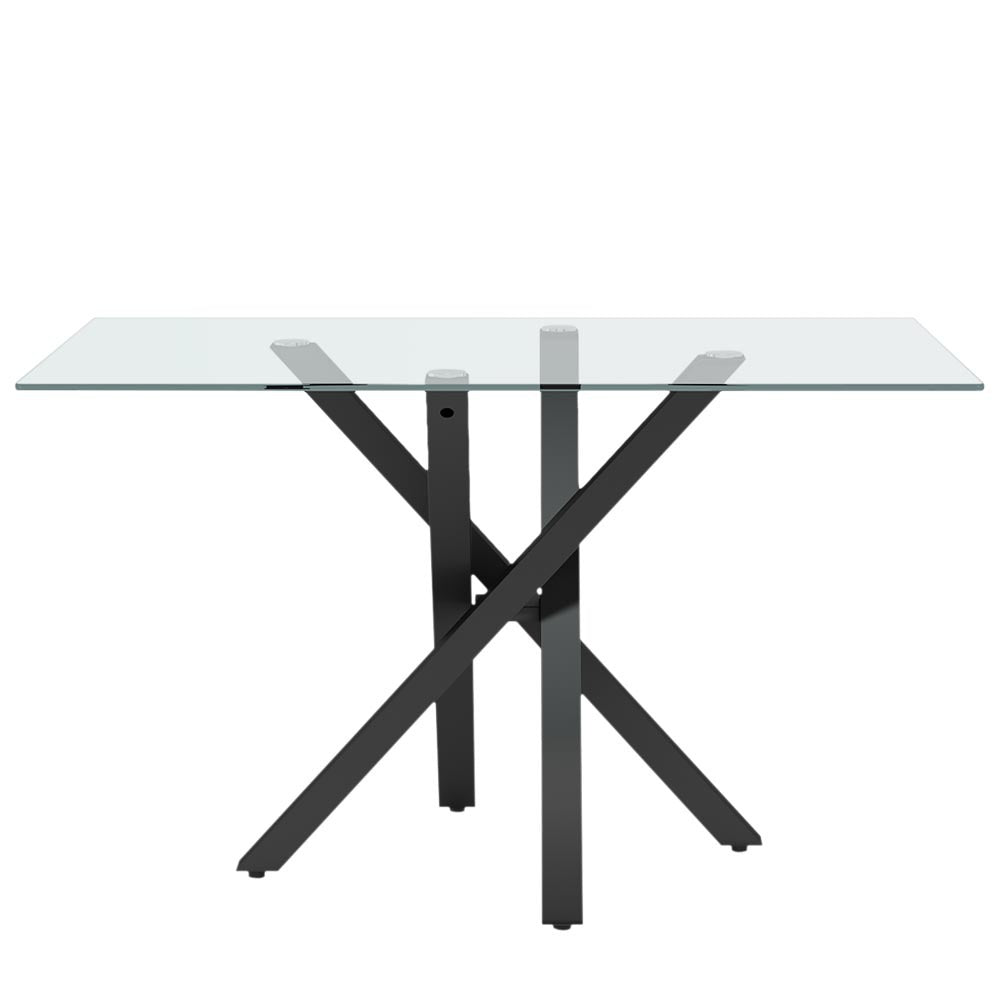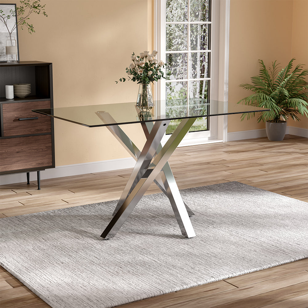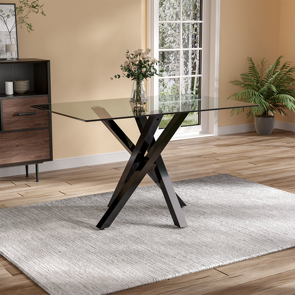Modern Tempered Glass Dining Table with Metal Crossed Legs