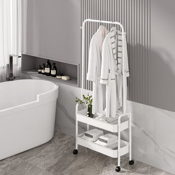 With a top hanging rod and 2 baskets, this clothes rack holds your seasonal clothing and accessories in style. The all-white look meets the glossy finish for a modern piece of addition that updates your storage. The top thickened rod offers a place to hang your shirts, suits and longer clothing to prevent wrinkles. Those two larger baskets are flexible enough to accommodate folded clothes and shoes. As for your bags and scarfs, just simply hang them on the side hangers. You will appreciate its existence in your dressing room, bedroom or bathroom.
