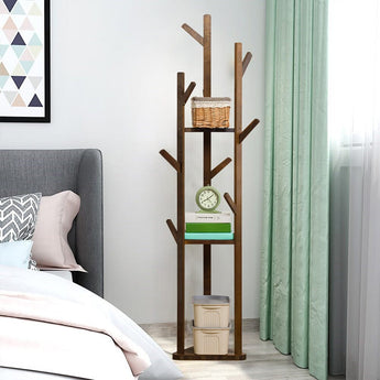 Wooden Coat Rack Stand with 3 Shelves for Entryway