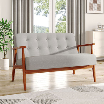 Linen Padded 2 Seater Sofa Rubber Wood Loveseat in Grey