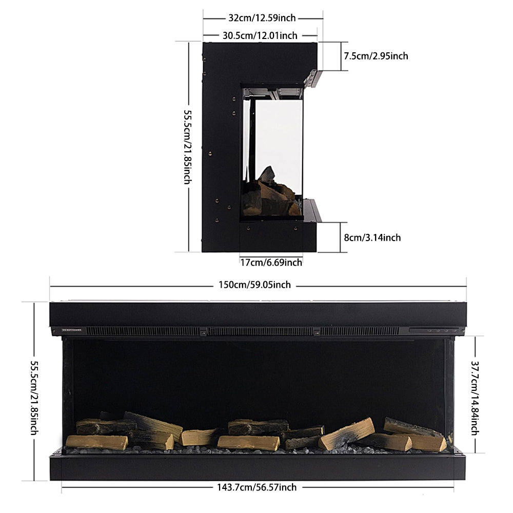 60inch 3-Sided Smart Electric Fireplace with Remote Control