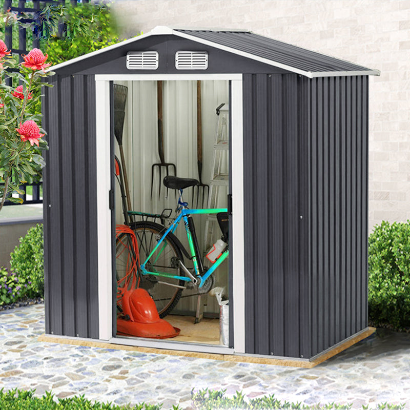 Black Steel Garden Storage Shed with Gabled Roof Top