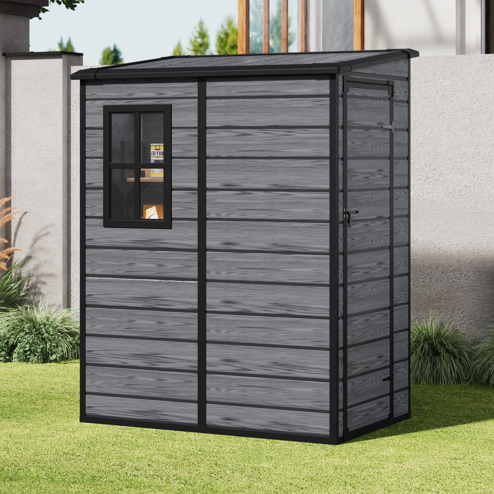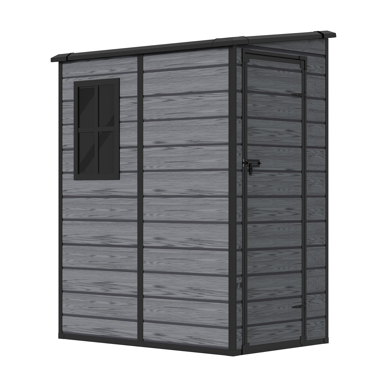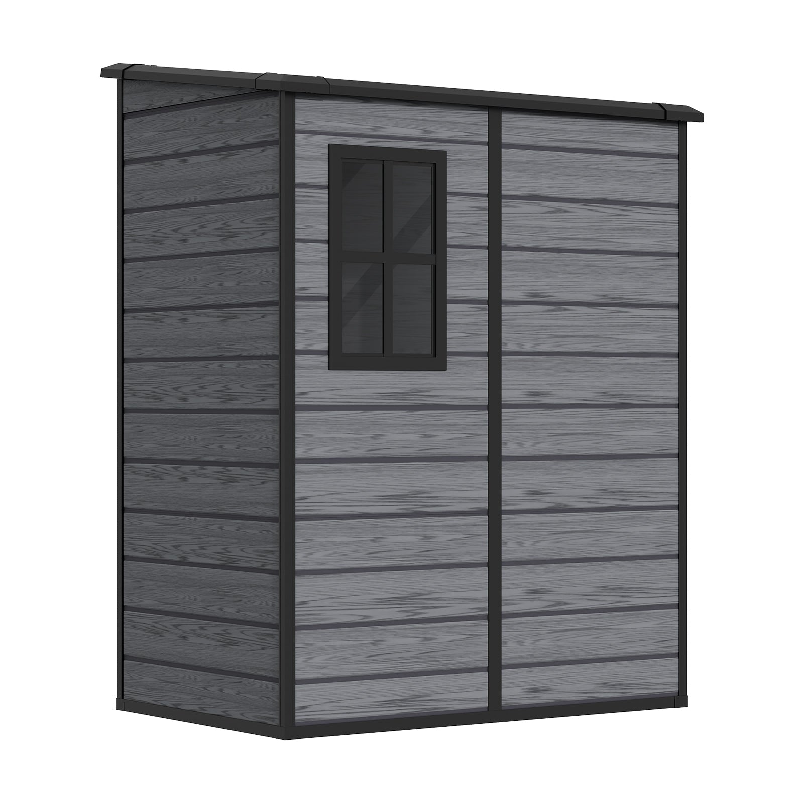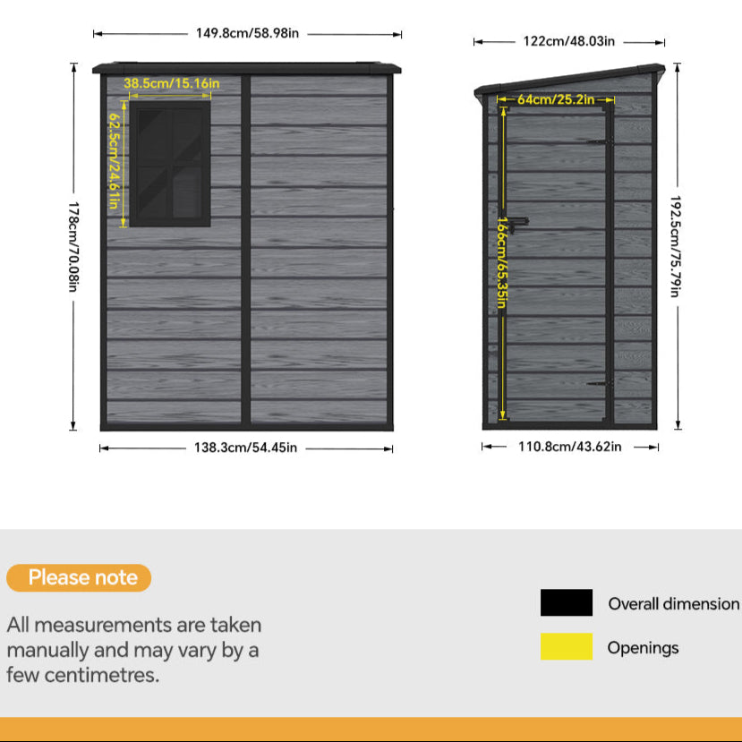 Reclaim your outdoor space with this plastic storage shed, engineered to securely house garden tools and seasonal essentials. Crafted from weather-resistant PP that defies rain or UV rays without easily cracking. The clever pent roof design channels rainwater away efficiently, preventing pooling while minimising debris buildup. Generous interior height accommodates gardening tools and other items, complemented by an outward-opening door for barrier-free loading. Its understated wood-grain finish blends effortlessly with any outdoor space, making it a versatile addition to your garden or patio.