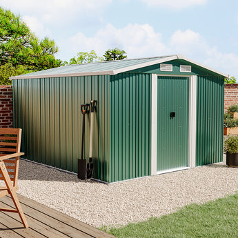Declutter your garden with this all-metal outdoor storage shed! Designed for both practical use and understated industrial appeal, its clean lines and neutral finish blend effortlessly into any garden or backyard setting. A practical apex roof effectively sheds rainwater while creating generous headroom inside for taller items. Smooth-operating double sliding doors at the front provide full-width access, making it easy to move large tools in and out. Offering a secure, organised home for everything from gardening supplies to outdoor furniture, this shed is the ultimate solution for a tidy exterior space.