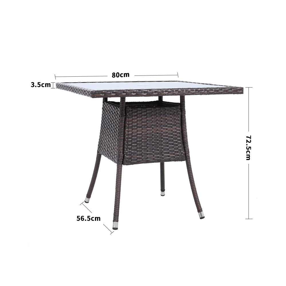 Rectangular: 80cm W x 80cm D x 72.5cm H