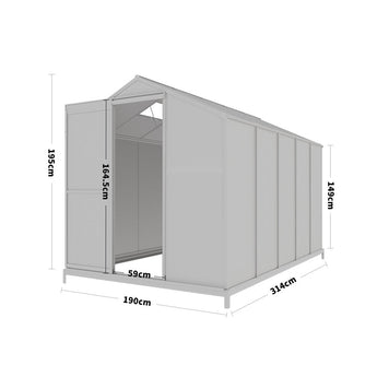 This greenhouse sure catches your eye! It features a rust-resistant, brushed aluminium frame and heavy-duty galvanized steel base that is designed to stand the test of time. Your plants will love the diffused light from the fresh clear, twin-wall poly-carbonate panels and have the added benefit of twice the heat retention of single-layer panels. And your plants will love it when you water them from the fresh rainwater that you collect from the gutter. Save money by starting your plants early from seeds and extending your season by protecting plants from fall frost. Get growing today and let our high quality greenhouse help you to bring your green dreams to life.