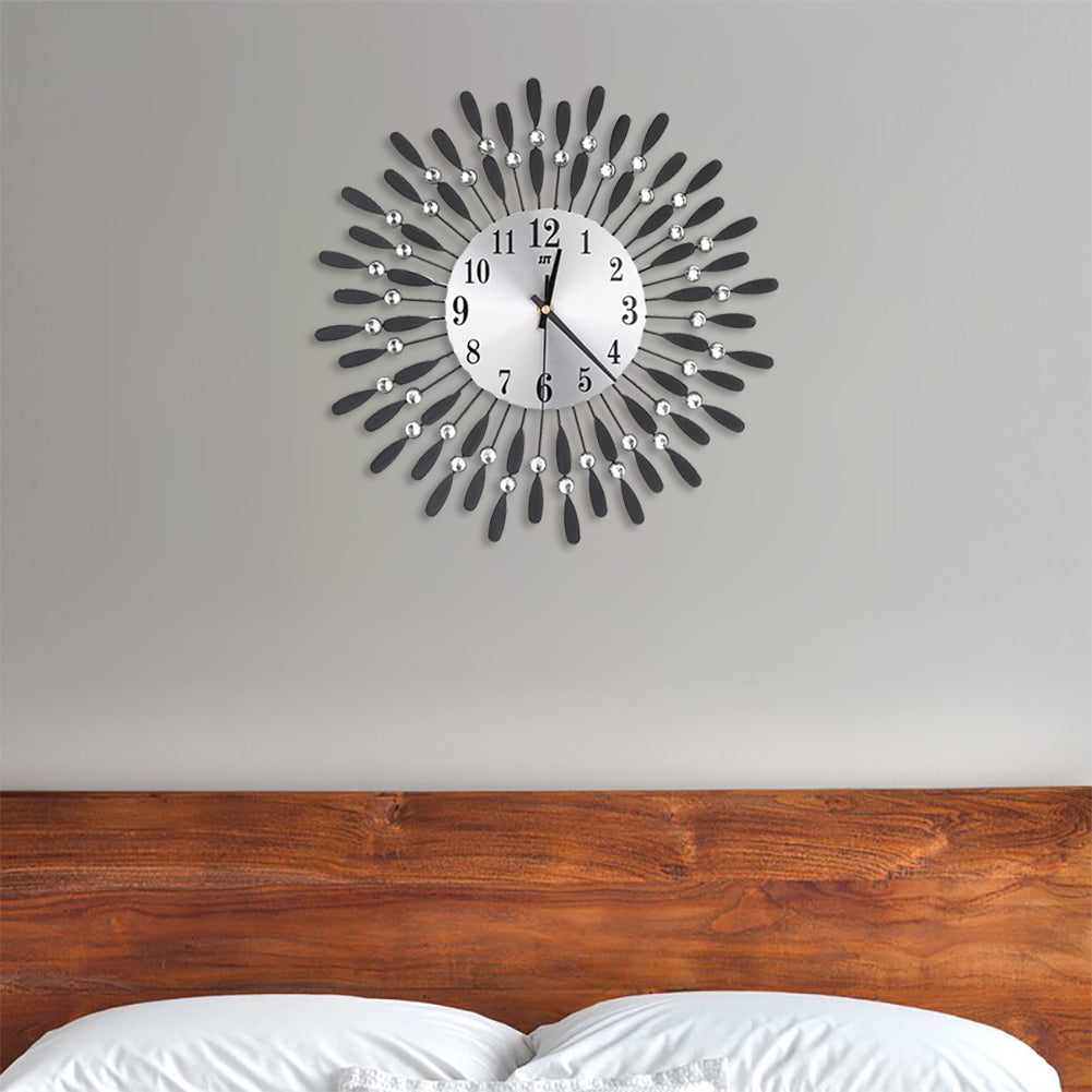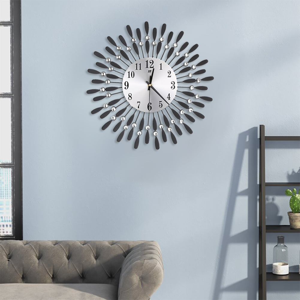 Enhance your time-telling experience with the 3D Silent European Drop Shape Metal Wall Clock with Crystal by Livingandhome. Made with meticulous craftsmanship and adorned with sparkling crystal beads, this elegant clock exudes a sense of refined luxury. Its noiseless movement ensures a peaceful atmosphere, while its sophisticated design resembles a majestic peacock's display. Adorned with shimmering crystal beads, the clock's beauty is further enhanced.