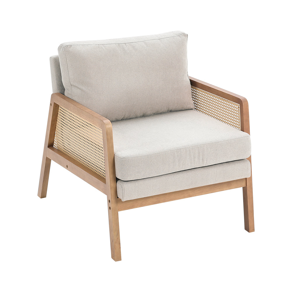 Linen Upholstered Woven Rattan Armchair with Seat Cushion