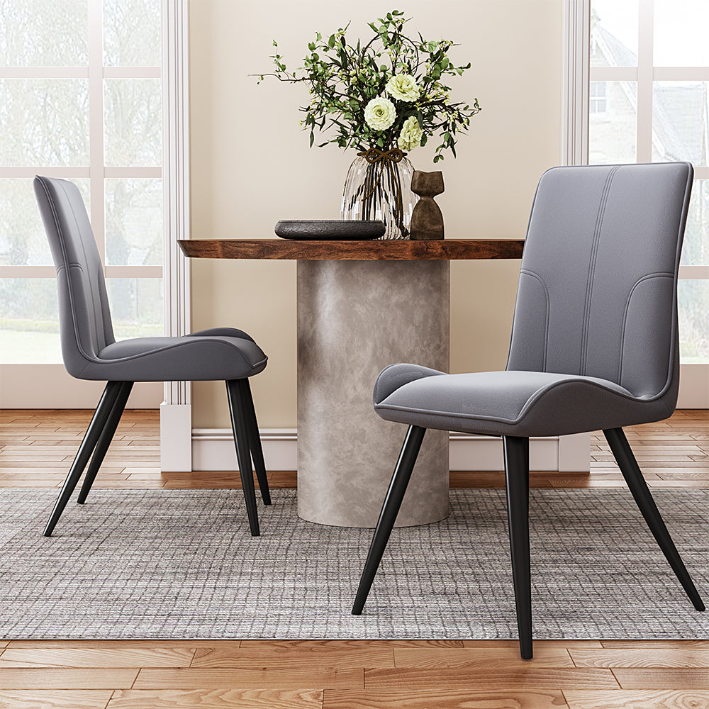 Add a morden style of furniture to your dining room with this set of velvet dining chairs. Designed with a high backrest, this set of chairs is covered in soft velvet. For maximum comfort, the cushions of this chair set are also equipped with a flexible foam padding, perfect for sitting on and enjoying your food. Its simple look lends itself to a variety of table and dining room decor.