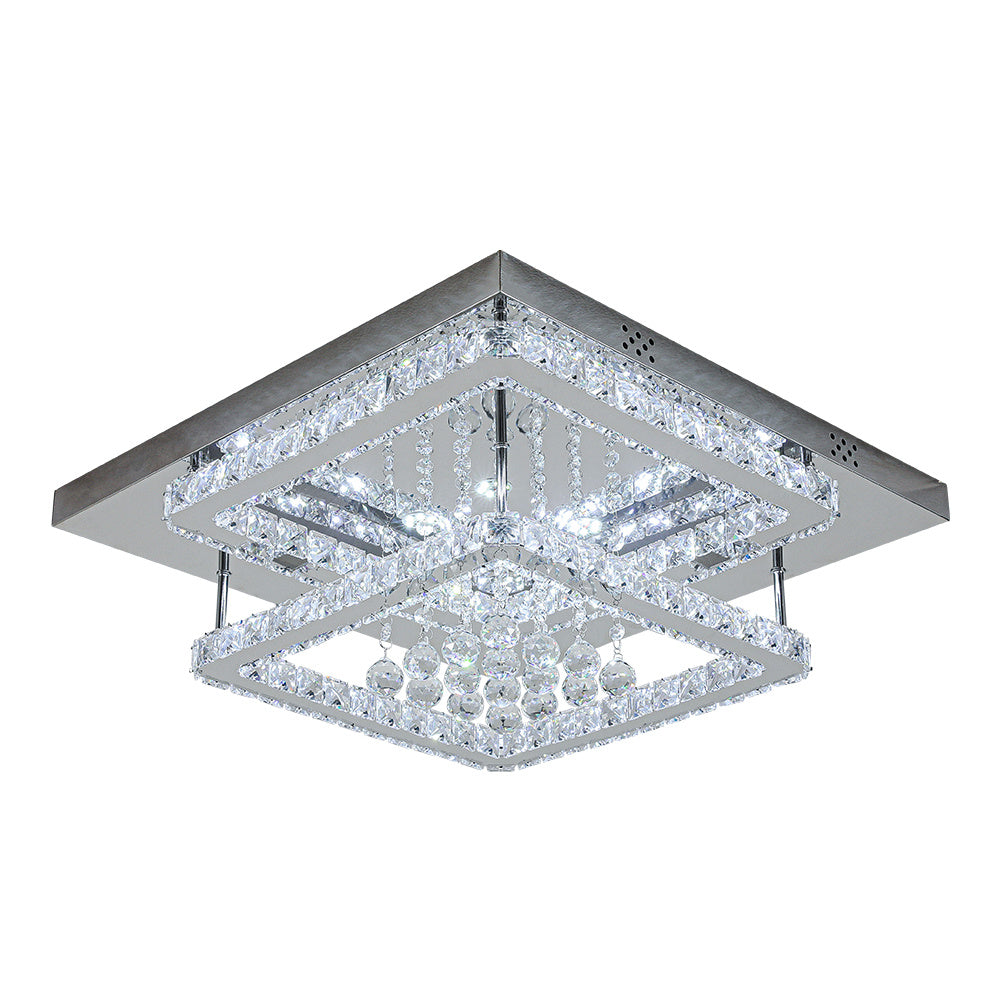 55cm W Double Tier Square Crystal Ceiling Light with Pendants