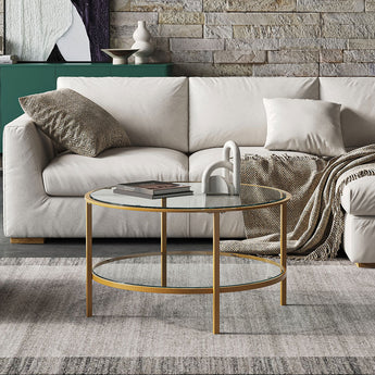 This contemporary style coffee table is a striking style. Tempered glass and a two-tier design make this coffee table good-looking and durable. This coffee table makes a stylish addition to the home, with shelves providing storage space for magazines, media, electronics and more, while the table surface is just right for tea or wine and more.