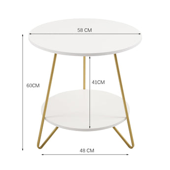 Chic 58 cm Two-Tier Round Coffee Table with Gold Frame