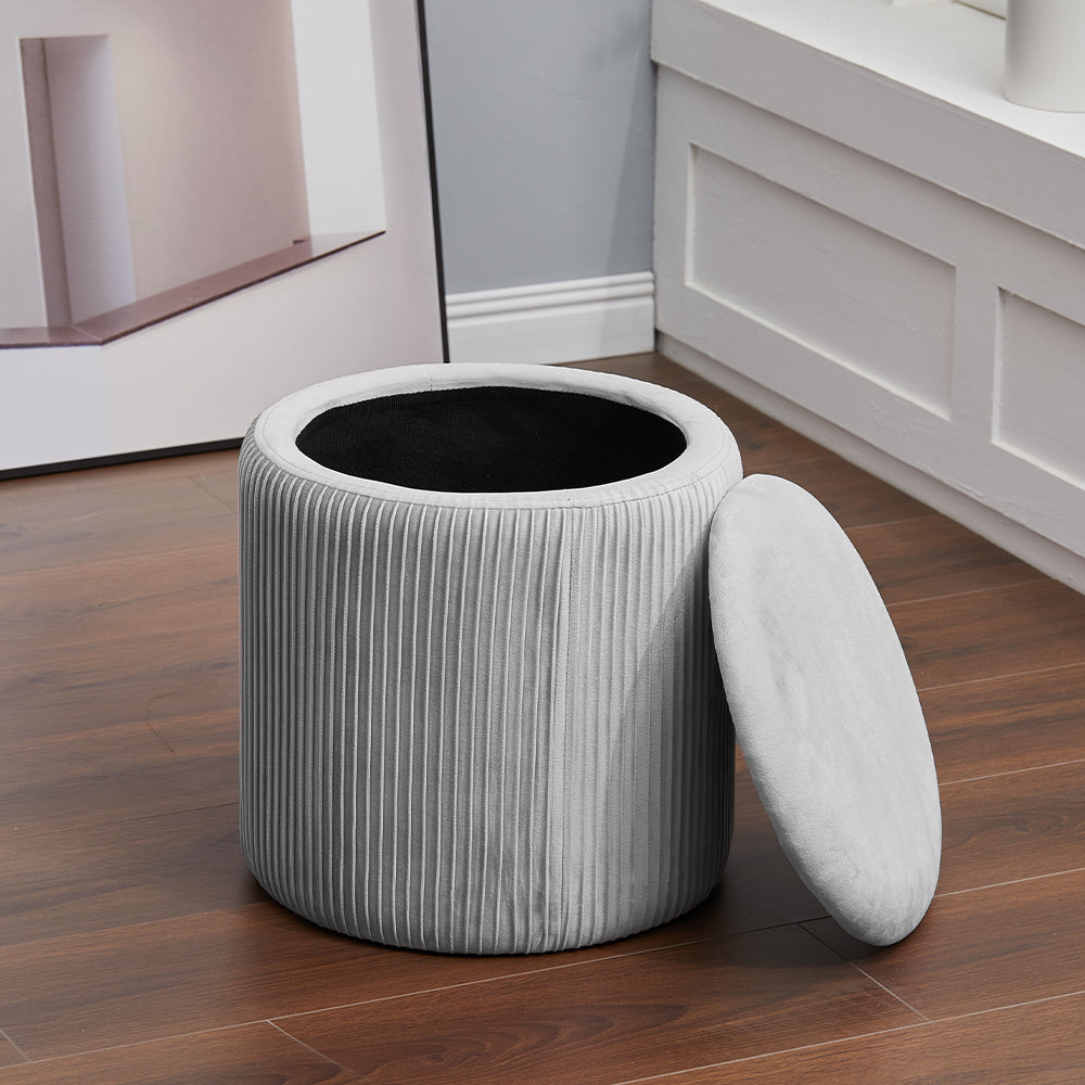 Dia. 38cm Round Ruched Velvet Padded Seat Ottoman Storage Footstool Lift-Off Lid
