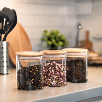 Add a dash of organic feel to your kitchen with this set of 12 glass spice jars, which feature transparent cylinders and top natural bamboo lids. Each jar features a secure lid that seals the savory spices, keeping them fresh and dry. Other than spices, they are also great for storing candies or nuts in bulk. Come in a compact size, they fit well on spice racks and drawers. Ideal for cooking enthusiasts who are looking to keep their kitchens organized and stylish.