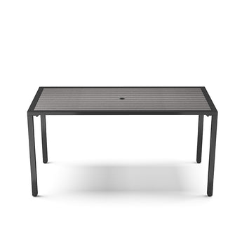 Experience a delightful al fresco dining experience with this outdoor dining table, offered in various colors and sizes to complement your current decor. Designed with weather-resistant materials and a polywood tabletop, this table requires minimal upkeep and is easy to keep tidy. Additionally, the parasol hole allows for optional shade with a sun umbrella. Comfortably accommodates up to six guests for a pleasant gathering with loved ones.